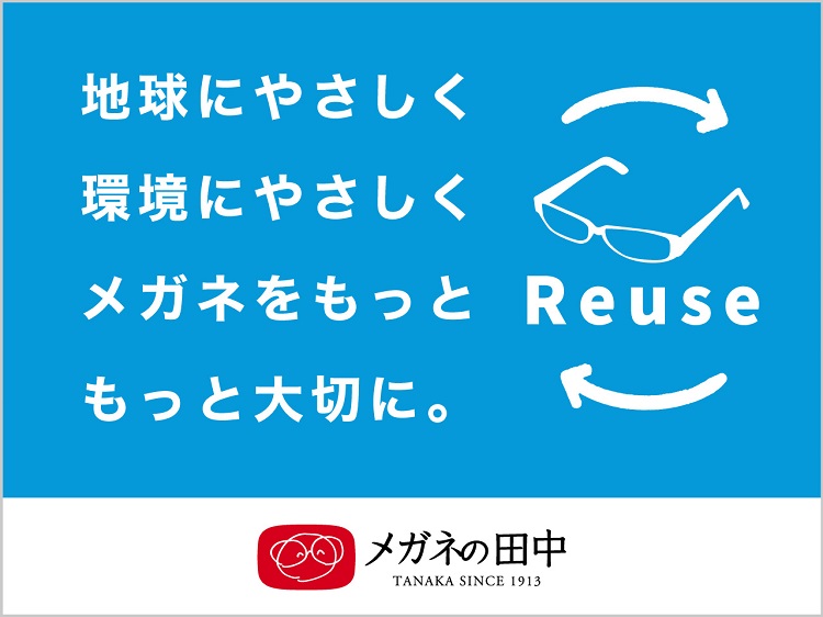 リユース(中古)メガネフレームを、メンズ・レディース・キッズ用あわせて100本、特設コーナーで販売いたします。プロの手によって美しく蘇ったフレームを、環境にやさしくリーズナブルな価格でお試しください。