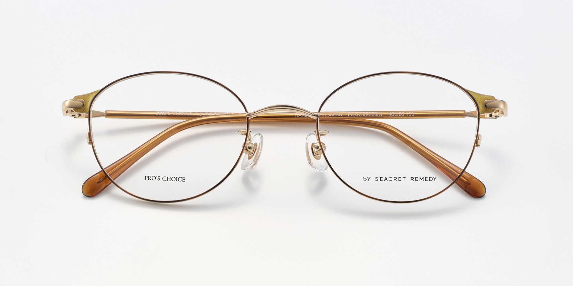 ヨロイ(フロントの両端)部分の艶やかな盛り七宝がアクセントになって、自然なリフトアップ感を演出。テンプルも七宝と同系色でまとめ、SEACRET REMEDYならではの華やかながら、肌なじみがよく上品なカラーバリエーションです。