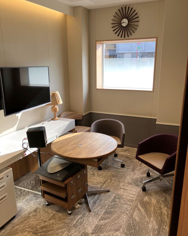 このほか、既存の2室あるカウンセリングブースには、聞こえの状態を視覚的にご説明できるようモニターを設置、フロア内のご相談コーナーはプライバシーに配慮してレイアウトしました。初めてご来店される方にも、調整やご相談に来られる既存のお客様にも、気軽にお立ち寄りいただけるアットホームな空間を目指しました。