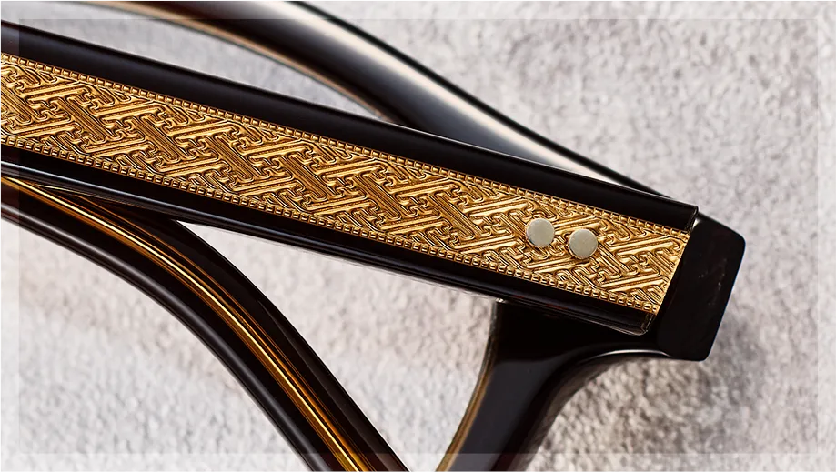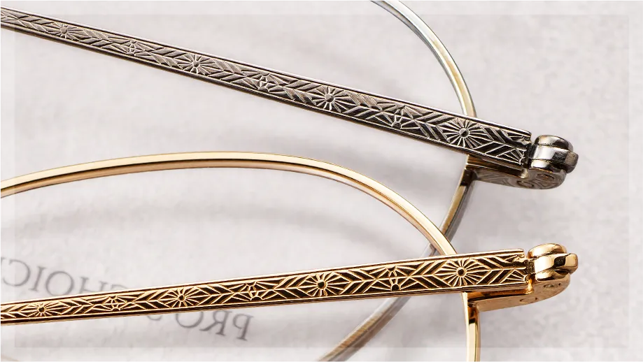 日本の伝統的な和柄をベースにアレンジされたオリジナルテンプル芯を採用。ディテールまでこだわりぬいた珠玉の逸品。